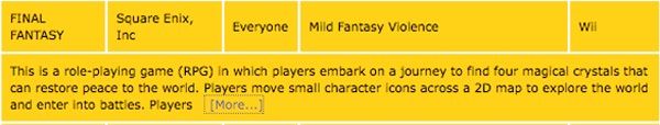 Bazy danych organizacji przyznających grom kategorie wiekowe już nieraz były źródłem przecieków i informacji dotyczących niezapowiedzianych jeszcze tytułów. Wygląda na to, że teraz podobna sytuacja dotyczy Final Fantasy - pierwszej części kultowej serii. Gra ma ukazać się na Wii jeszcze w ciągu kilku najbliższych dni.