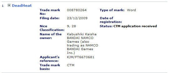 Jak podaje redakcja serwisu Siliconera, Namco Bandai odwiedziło Urząd Patentowy zastrzegając prawo do nazwy DeadHeat. We wpisie, niestety, nie zawarto żadnych sugestii, w jaki sposób wspomniana firma wykorzysta tę markę. Pojawiło się jednak kilka przypuszczeń, gdyż DeadHeat nie wydaje się być raczej podtytułem dla nowej gry.