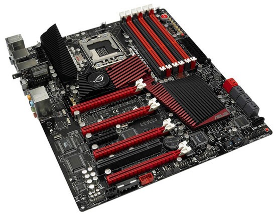 Płyta posiada również zaimplementowaną funkcję ROG Connect, która pozwala na overclocking poprzez Bluetooth. Rampage III Extreme X58 wyposażono w sześć slotów na kości RAM DDR3-2200, siedem portów SATA 3.0 i dwa SATA 6.0, cztery sloty PCI-Express x16 (o obsłudze SLI i CrossFireX nie trzeba chyba wspominać?), kartę dźwiękową 7.1, dwa porty USB 3.0 i FireWire.