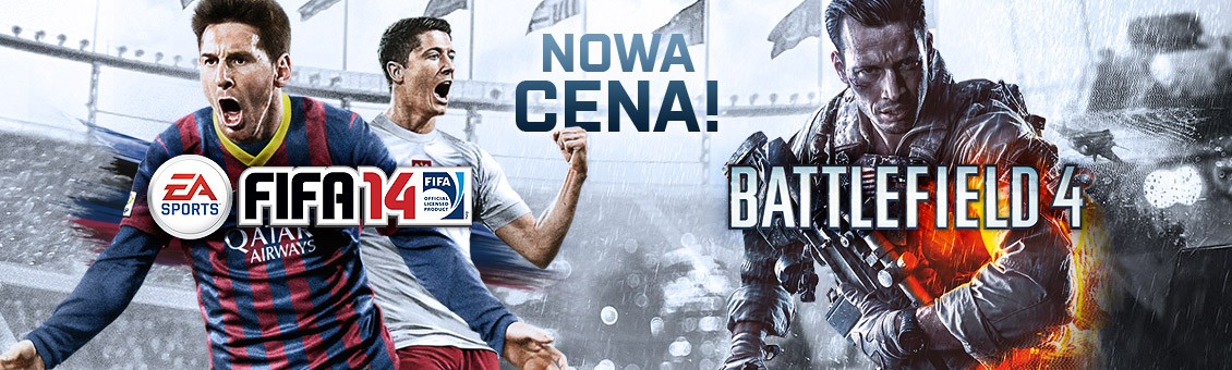 FIFA 14 na Xboksa 360 i PlayStation 3 kosztuje 134,99 złotych, natomiast Battlefielda 4 można nabyć za 74,99 zł (PC), 134,99 zł (Xbox 360 i PlayStation 3) oraz 234,90 zł (Xbox One oraz PlayStation 4). Pamiętajcie, że to nie jest promocja - to nowe, niższe ceny w sklepie gram.pl!