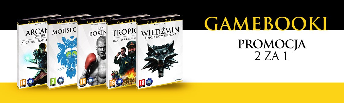 Gamebook to seria CDP.pl, w której otrzymujecie nie tylko grę, ale i książkę. Tylko przez najbliższy tydzień wybrane tytuły z tej edycji są dostępne w naszej atrakcyjnej promocji – 2 w cenie 1! Akcją objęliśmy zarówno starsze tytuły, w tym między innymi Edycję Rozszerzoną pierwszego Wiedźmina, Sagę Gothic, Chivalry: Medieval Warfare czy Worms Revolution, jak i dwie nowości – MouseCraft oraz Real Boxing.