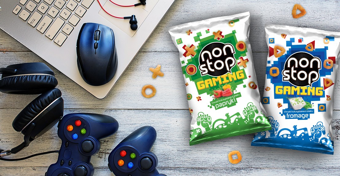 Chrupki kukurydziane Non Stop Gaming mają kształt przycisków pada. Także ich opakowania wprowadzają w gamingowy klimat. Dostępne w dwóch smakach – paprykowym i fromage – Non Stopy Gaming znajdziesz w osiedlowych sklepach Makro, Intermarche oraz w wybranych sklepach sieci Auchan. W 2017 roku kampanię inaugurującą pojawienie Non Stopów Gaming na rynku wsparł popularny youtuber ReZigiusz, który przygotował dla marki specjalny prank i gościł z nią na Poznań Game Arena, największych targach gamingowych w Polsce.
