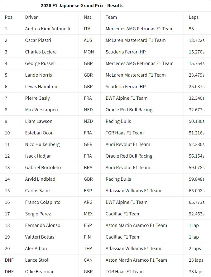 Kierowca Mercedesa, Andrea Kimi Antonelli, wygrał wyścig o Grand Prix Japonii 2026, startując z Pole Position i odnosząc drugie zwycięstwo w sezonie. 19-letni Włoch już wcześniej zapisał się w historii Formuły 1, zostając zaledwie drugim nastolatkiem, który wygrał wyścig Grand Prix, a stało się to podczas rundy w Chinach. Było to także pierwsze zwycięstwo włoskiego kierowcy od 20 lat. Teraz potwierdził swoją świetną formę, dominując również na torze w Japonii.