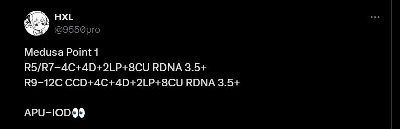 Mówi się, że modele Ryzen 5 i Ryzen 7 oparte na platformie „Medusa Point 1” będą miały hybrydowy układ CPU: 4 klasyczne, 4 gęste i 2 rdzenie o niskim poborze mocy, w połączeniu z 8 jednostkami obliczeniowymi RDNA 3.5+.