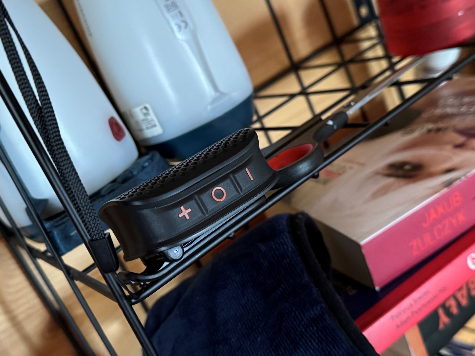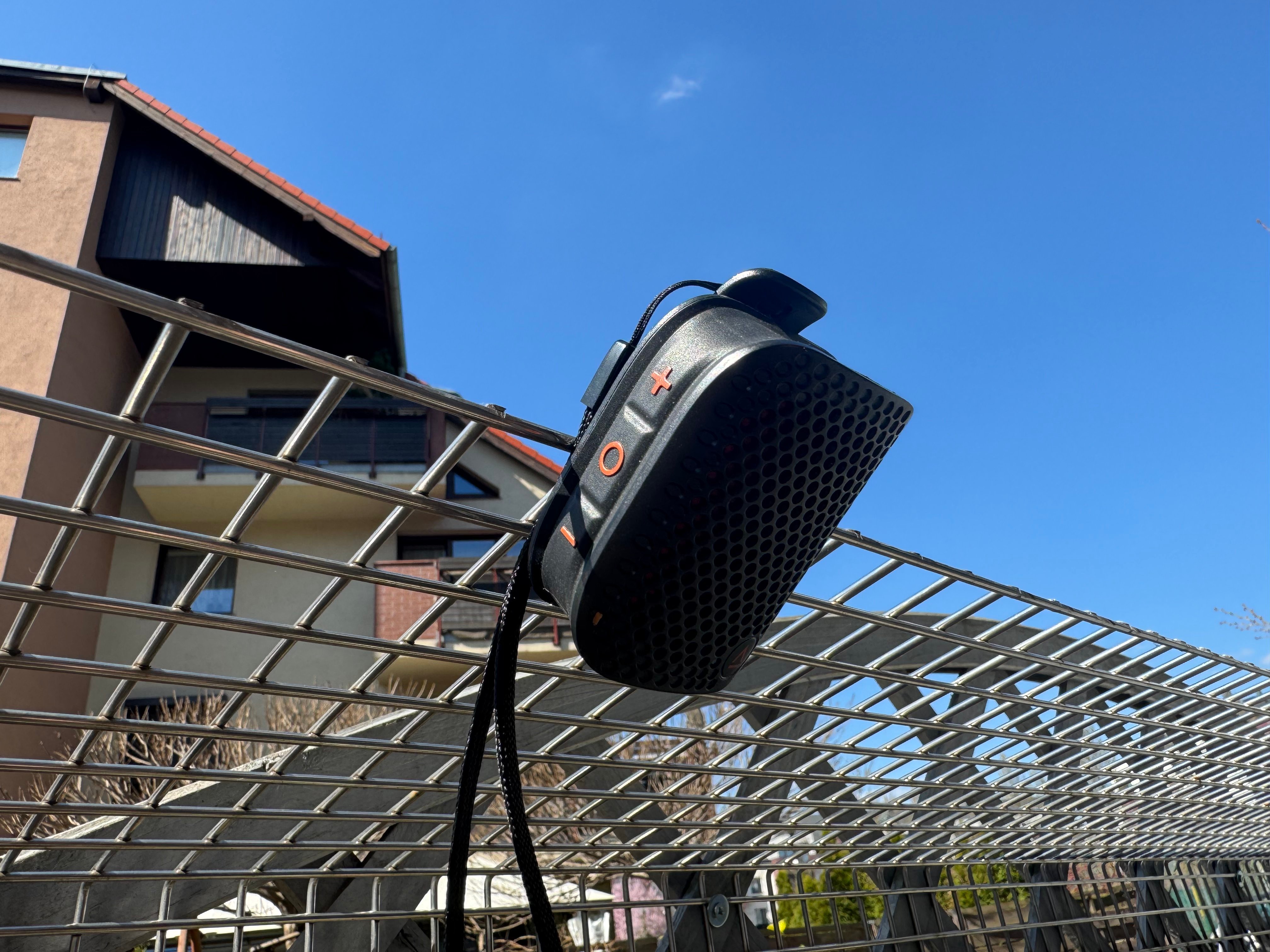 MUVO Free przychodzi z klipsem, magnesem oraz smyczą, co bardzo pomaga z transportem, ponieważ głośnik można przypiąć do ubrań lub bezpośrednio przyczepić do roweru czy innego sprzętu magnesem.