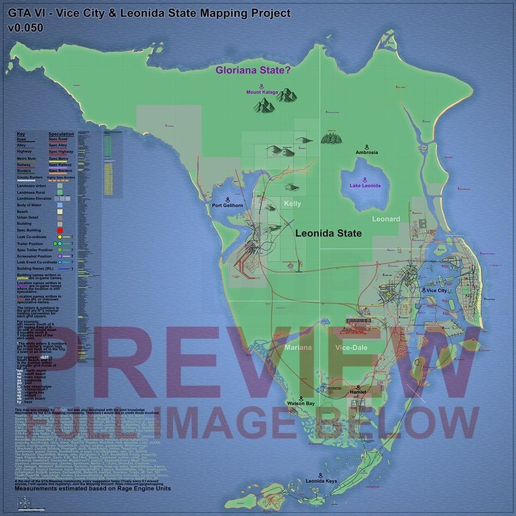 Jeden z użytkowników Reddita o nicku EliteFireBox opublikował najnowszą wersję fanowskiej mapy tuż po premierze drugiego trailera. Jak podkreśla, cały zespół hobbystów „ciężko pracuje, łącząc ze sobą wszystkie dostępne tropy”. W tworzeniu mapy pomagają nie tylko screeny z gry, geografia realnej Florydy, oficjalne informacje, ale nawet drobne detale, takie jak układ autostrad, plaż, jezior, lotnisk czy nazwanych budynków.