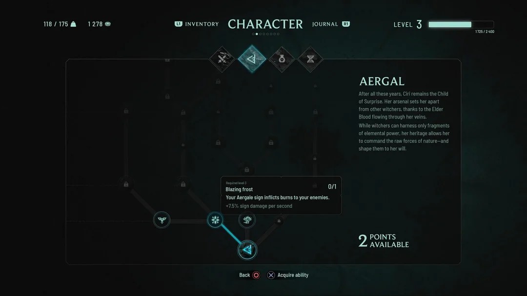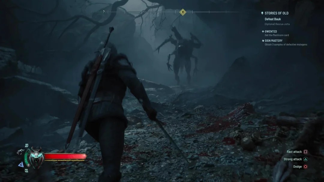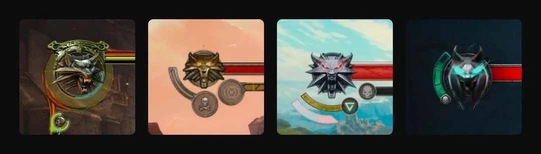 Podkreślił, że punktem wyjścia był interfejs Wiedźmina 3. W jego wersji medalion z paskiem zdrowia nadal znajduje się w lewym górnym rogu, mapa pozostaje po prawej stronie, a znaki, przedmioty i podstawowe komendy widnieją na dole ekranu.