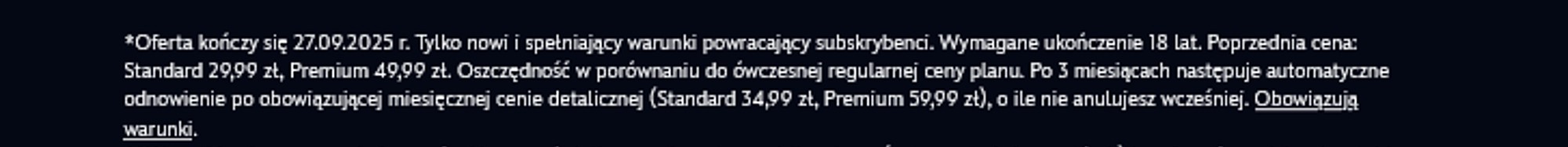 Jednak w materiałach promocyjnych pojawił się niepokojący szczegół, który wywołał spekulacje o podniesieniu cen abonamentu. Dopisek sugeruje, że po zakończeniu promocji ceny abonamentu może wzrosnąć do 34,99 zł za plan Standard i aż 59,99 zł za plan Premium. To oznaczałoby skok cen o 5 zł dla planu Standard i aż 10 zł dla Premium. Disney+ nie potwierdziło jeszcze oficjalnie tych zmian.