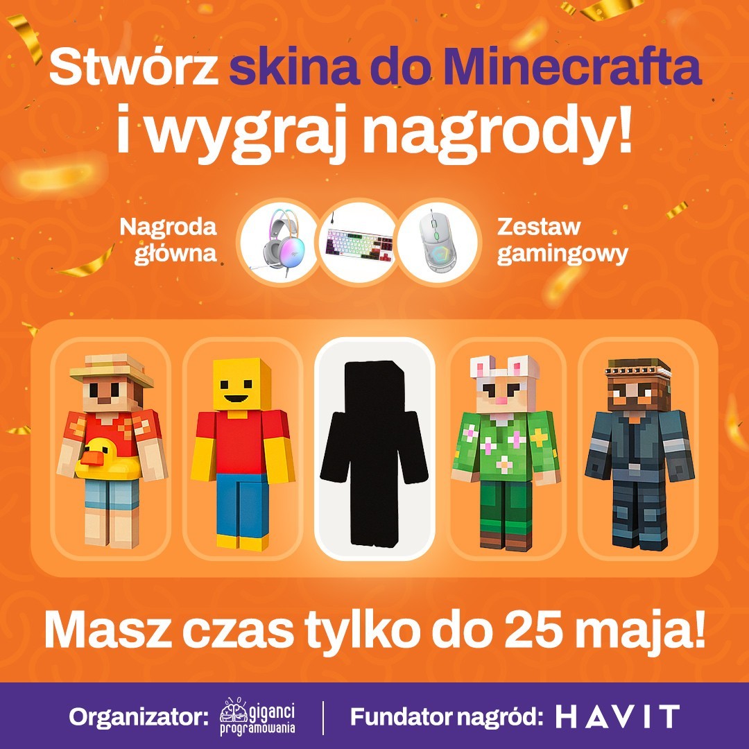 Właśnie wystartował kreatywny konkurs dla rodziców i ich dzieci na Facebooku Gigantów Programowania. Należy stworzyć własnego skina do gry Minecraft, a pięciu zwycięzców z najlepszymi pracami zdobędzie świetne, gamingowe nagrody!