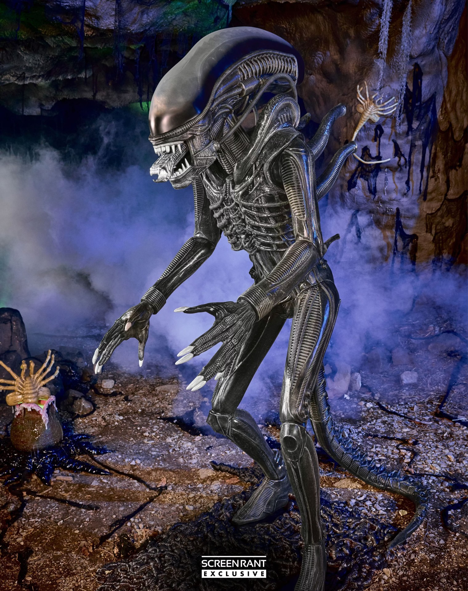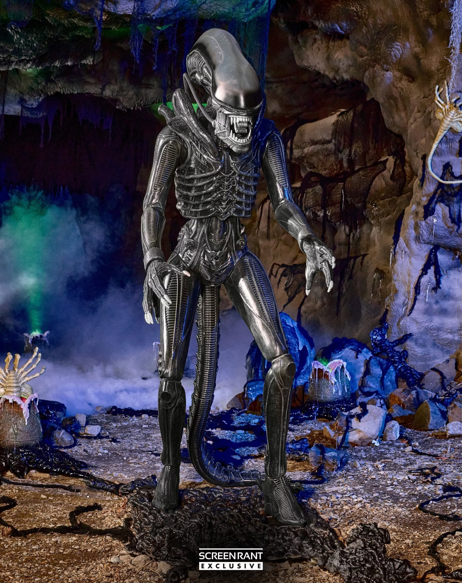 Firma Spirit Halloween zaprezentowała pełnowymiarową, animatroniczną figurę Ksenomorfa, która mierzy ponad sześć stóp wysokości, czyli około 180 centymetrów. Projekt skupia się na wiernym odwzorowaniu klasycznego wyglądu znanego z pierwszego filmu. Charakterystyczna wydłużona czaszka, grzbietowe kolce, biomechaniczne detale, ogon oraz pazury tworzą sylwetkę, która natychmiast przywołuje skojarzenia z jednym z najbardziej przerażających stworzeń w historii kina.
