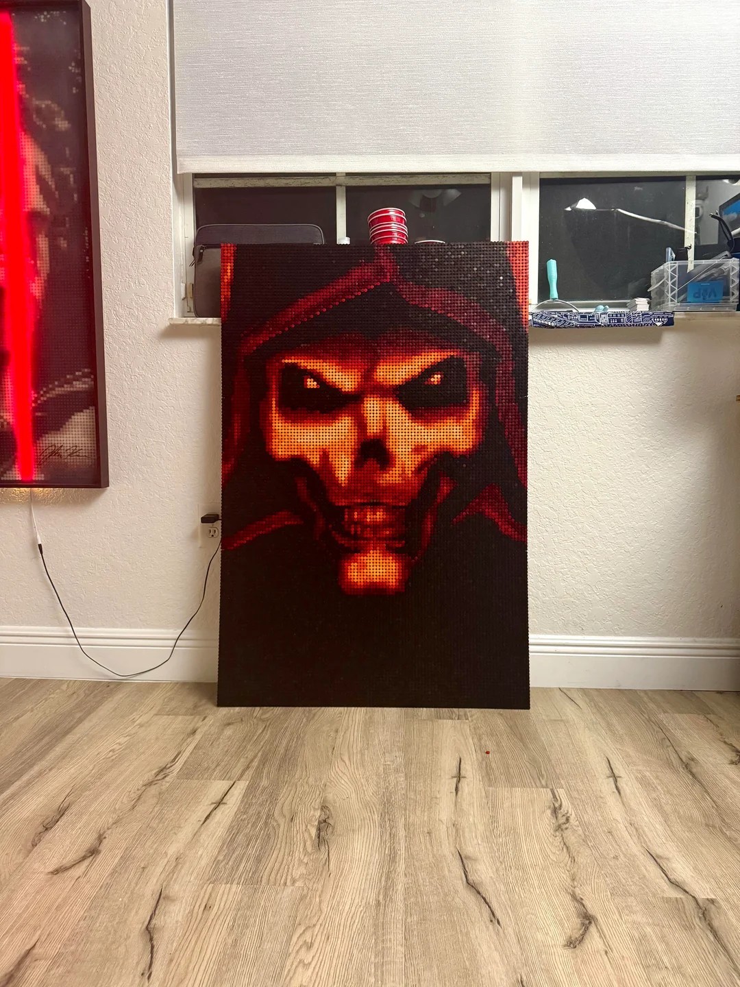 Autor projektu, znany jako AngryVegetables9, zaprezentował na Reddicie własnoręcznie wykonany obraz inspirowany jedną z najbardziej rozpoznawalnych grafik z Diablo 2. Całość powstała z około 13 500 klocków LEGO. Co ciekawe, autor wykorzystał tylko te najmniejsze klocki o wymiarach 1x1 cm. Elementy ustawiono wypustkami do góry, dzięki czemu kompozycja przypomina pikselową strukturę znaną z klasycznych produkcji. To właśnie ten zabieg nadaje pracy charakterystyczny, retro klimat.