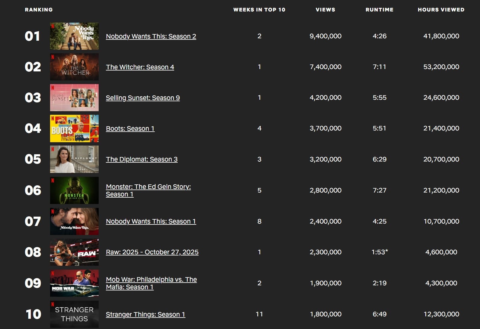 Widzowie, którzy szukali bardziej magicznego i dojrzałego seansu na halloweenowy weekend, chętnie sięgnęli po nowy sezon Wiedźmina, który rzucił swój urok i uplasował się na drugim miejscu listy anglojęzycznych seriali.