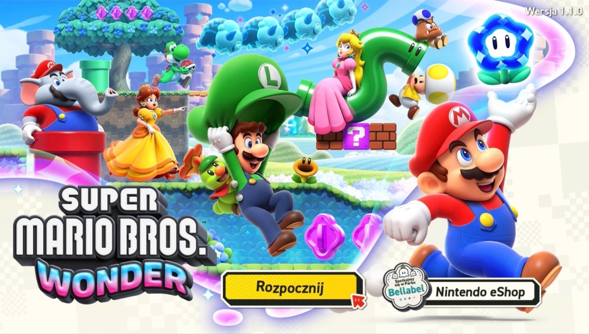 Aktualizacja przygotowuje graczy na premierę Super Mario Bros. Wonder – Nintendo Switch 2 Edition + Meetup in Bellabel Park, która odbędzie się już za tydzień, czyli 26 marca. Patch oznaczony numerem 1.1.0 wprowadza również mnóstwo poprawek, a także opcję skanowania Amiibo. Poniżej zobaczycie screeny z polskiej wersji Super Mario Bros. Wonder.