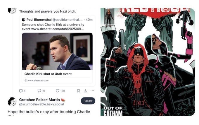 Burza nie ominęła również środowiska komiksowego. DC Comics zdecydowało się na natychmiastowe zakończenie nowej serii Red Hood po tym, jak jej transpłciowa scenarzystka, Gretchen Felker-Martin, również zamieściła w sieci skrajnie obraźliwe komentarze na temat Kirka, jeszcze zanim potwierdzono jego śmierć.