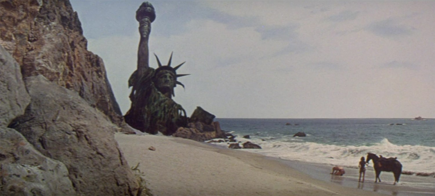Gdy Taylorowi udaje się uciec i dotrzeć do tak zwanej Strefy Zakazanej, odkrywa coś, co zupełnie zmienia sens jego podróży. Na plaży natrafia na zniszczoną, częściowo zakopaną w piasku Statuę Wolności. Przez cały film bohater, podobnie jak widzowie, był przekonany, że przebywa na odległej planecie. Ostatnie ujęcie ujawnia, że w rzeczywistości znajduje się na Ziemi, zniszczonej przez człowieka.