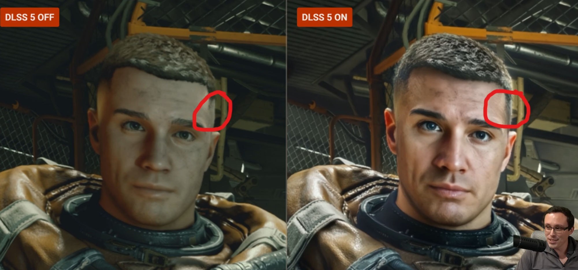 Zamiast tego system analizuje obraz i na jego podstawie samodzielnie interpretuje cechy sceny. Według firmy obejmuje to rozpoznawanie takich elementów jak włosy, tkaniny, skóra czy warunki oświetleniowe, jednak wszystko odbywa się na podstawie jednej klatki. Wcześniejsze materiały promocyjne sugerowały bardziej zaawansowane rozumienie sceny przez DLSS 5. W praktyce okazuje się, że model nie ma dostępu do pełnych danych silnika gry, a wiele aspektów obrazu jest jedynie szacowanych przez sztuczną inteligencję.