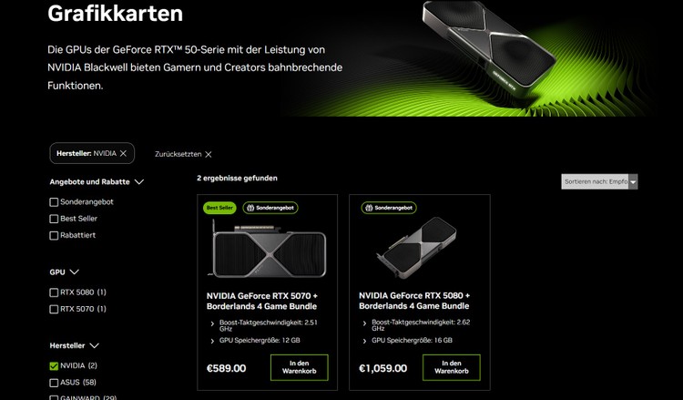 W Niemczech RTX 5090 Founders Edition całkowicie zniknął z listy. W USA i Wielkiej Brytanii usunięto zarówno RTX 5090, jak i RTX 5080 Founders Edition. Jedynym modelem, który wciąż jest wyświetlany na stronie, pozostaje RTX 5070 Founders Edition.