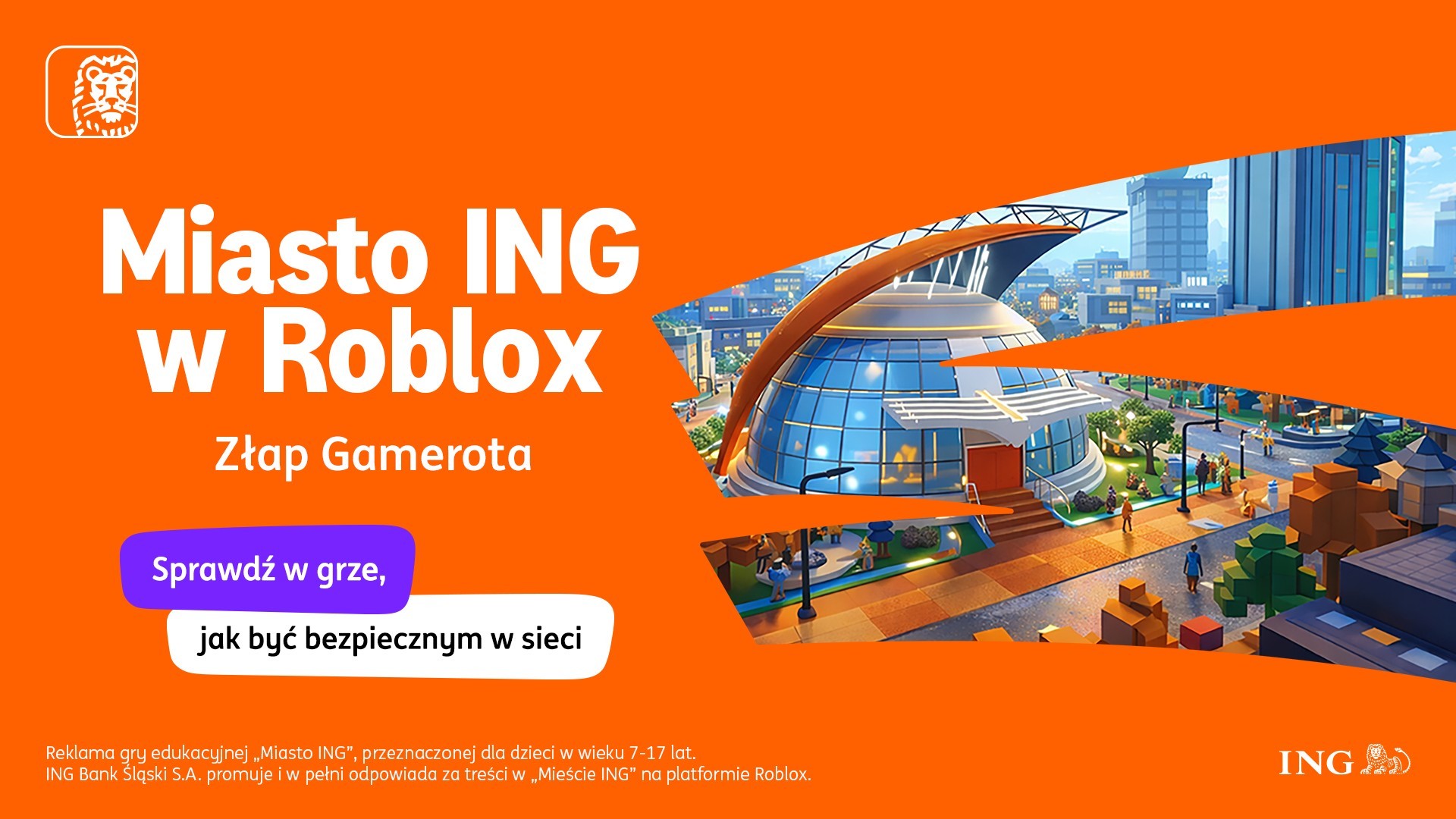 „Miasto ING” to gra edukacyjna, z którą jako pierwszy w Polsce, Bank ING pojawił się na platformie gamingowej Roblox w 2022 roku. To wirtualny świat, który w swoich pięciu sezonach konsekwentnie przybliża dzieciom temat bezpieczeństwa w sieci. Poprzez zabawę uczy zasad poruszania się w sieci, tworzenia silnych haseł, rozpoznawania niebezpiecznych stron, chronienia danych osobowych. Jednocześnie w Mieście ING dzieci poznają podstawy oszczędzania, zarabiania i zarządzania finansami. Projekt powstał, by pomóc młodym wejść w finansową dorosłość i – w naturalnym środowisku platformy Roblox – poznać życiowe zasady zarządzania pieniędzmi w bezpieczny sposób. W grze gracze poznają też zasady cyberbezpieczeństwa – co robić, a czego nie robić w wirtualnym świecie m.in.: tworzenia silnych haseł, rozpoznawania niebezpiecznych stron, nieudostępniania i bezpiecznego przechowywania haseł.