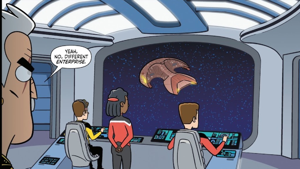 Jak ujawniono w komiksie Star Trek: Lower Decks #18, pojawiła się nowa jednostka o tej samej nazwie — z jednym istotnym szczegółem. To nie jest statek Federacji, lecz… Ferengi. Dla tej rasy nazwa „enterprise” ma zupełnie inne znaczenie, bliższe działalności handlowej niż misji eksploracyjnej. W praktyce oznacza to sprytne zagranie. Ferengi mogą wykorzystać renomę nazwy Enterprise jako element strategii biznesowej i psychologicznej. Samo usłyszenie tej nazwy może wzbudzać respekt lub zaufanie, co w galaktyce pełnej nieufnych ras bywa bezcenne.