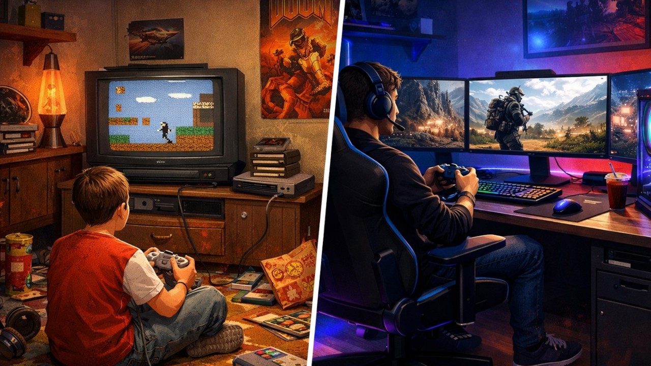 Granie kiedyś vs granie obecnieGrafika wygenerowana przez AI