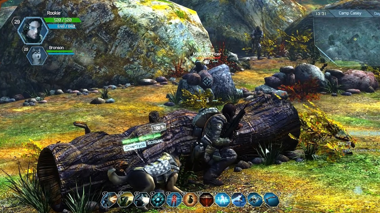 W momencie, gdy padły te słowa, zaprezentowano krótki fragment gameplayu z wczesnej wersji gry. Widać na nim gracza walczącego z większą grupą oponentów. Co ciekawe, protagoniście towarzyszy tam pies, który również może atakować przeciwników. W oczy rzuca się tutaj odmienny od znanego ostatecznie styl wizualny. Jak wiemy, świat w The Division jest mocno surowy i utrzymany w szarej, wyblakłej kolorystyce. Tymczasem pokazany pierwowzór był pod tym względem o wiele żywszy i zwyczajnie bardziej kolorowy. Jednocześnie na tamtym etapie nie zaimplementowano jeszcze żadnych umiejętności, a sama gra miała posiadać nawet charakterystyczne dla MMP hotbary.