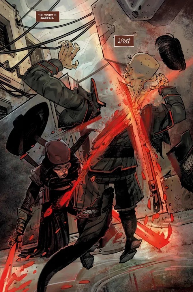 Nowa seria wydawnictwa Titan Comics to opowieść o przeszłości Nemesis – bohaterki granej przez Doonę Bae. Komiks, którego scenariusz napisała Gail Simone, a rysunki stworzył Federico Bertoni, ukazuje się na podstawie opowiadania samego Zacka Snydera. W centrum historii znajdziemy pełną akcji opowieść o zemście, osadzoną w brutalnym świecie rządzonym przez Imperium. Morderstwo rodziny Nemesis staje się punktem zwrotnym, prowadzącym ją ku przemianie w wojowniczkę, którą znamy z filmów.