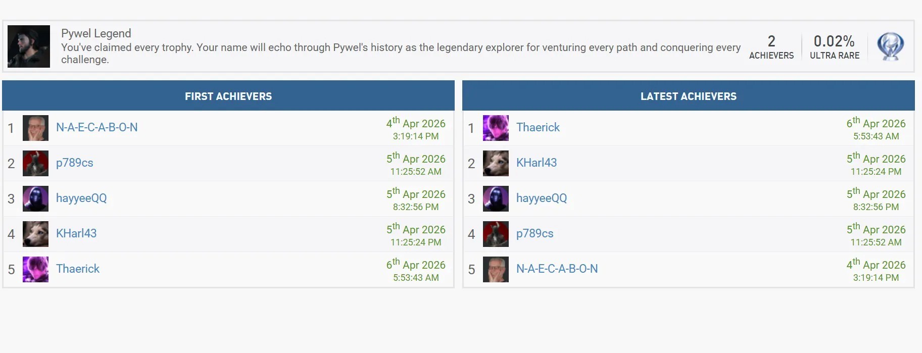 Otwarty świat produkcji Pearl Abyss, kraina Pywel, okazał się tak rozległy, że zdobycie kompletu trofeów stanowi wyzwanie niemal ekstremalne. Pierwszy gracz, któremu udało się zdobyć platynowe trofeum w Crimson Desert, musiał poświęcić na to aż 285 godzin.
