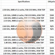 Intel wprowadził do sprzedaży dwa nowe modele czterordzeniowych układów oraz obniżył ceny czterech modeli z serii Core 2 Quad oraz trzech mobilnych i trzech serwerowych procesorów.